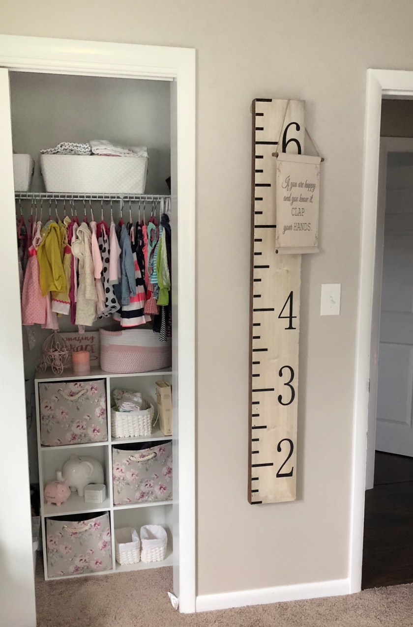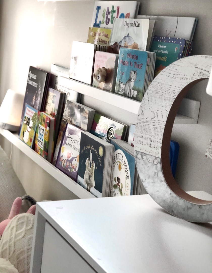 Guests of our baby shower brought books instead of cards, so I wanted to make sure we had shelving for Grace’s little library. I loved the idea of these shelves and imagined her being old enough to pick a book for me to read to her.